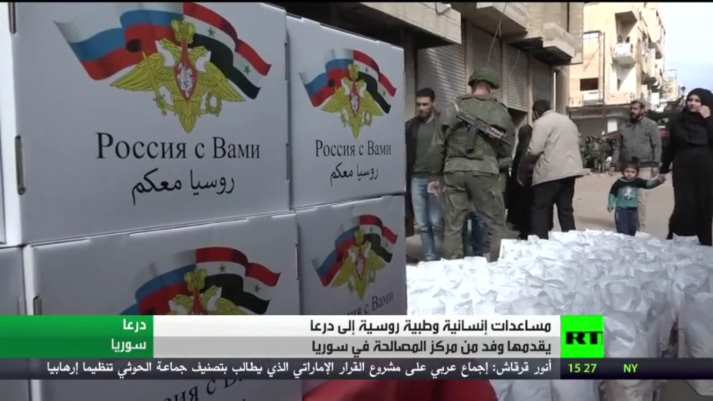 وزَّع وفد من المركز الروسي للمصالحة في سوريا مساعدات طبية وإنسانية على سكان مدينة درعا جنوبي سوريا، مع معاينات طبية للأهالي.