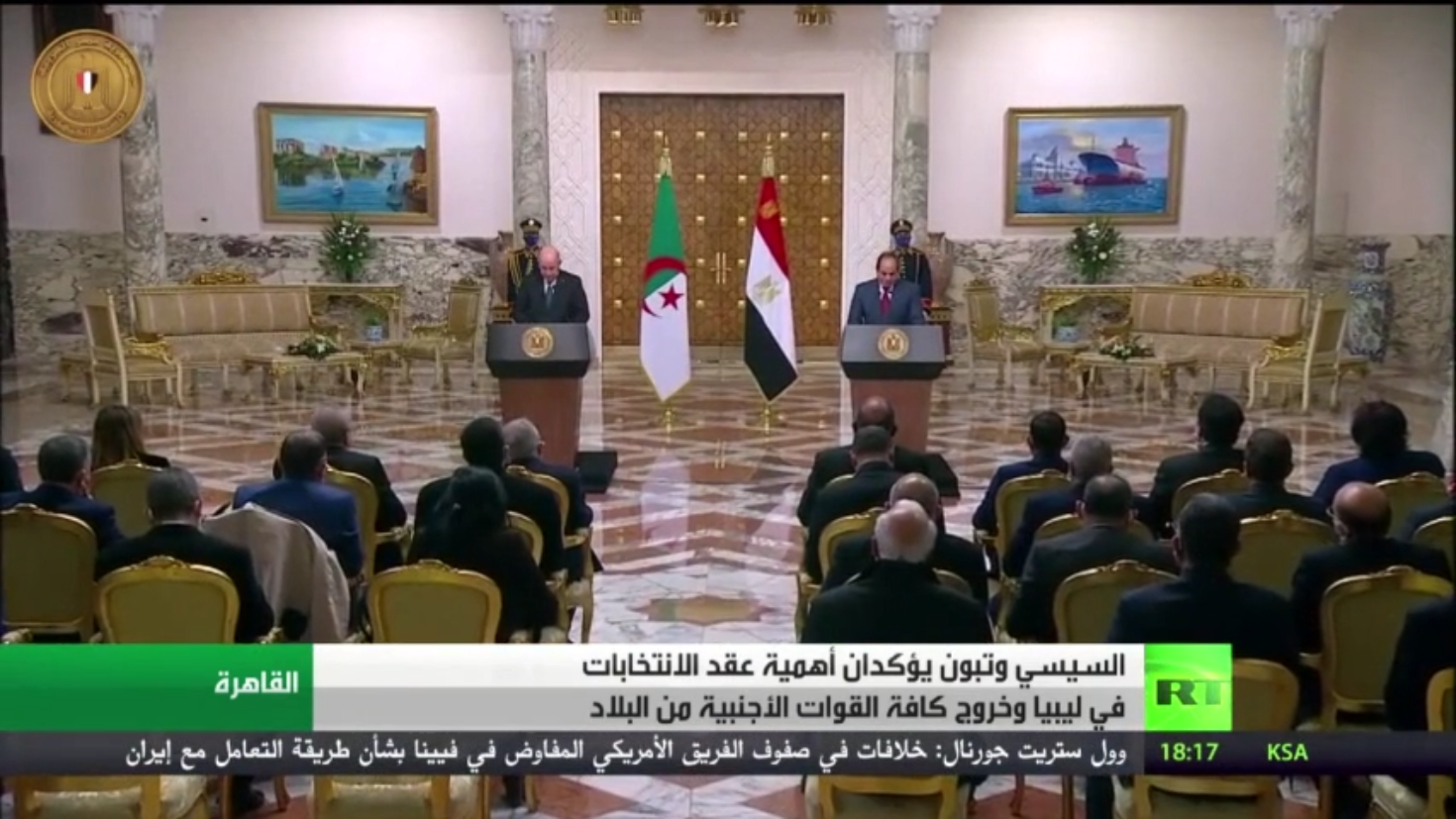 شدد الرئيس المصري عبد الفتاح السيسي خلال مؤتمر صحفي مع نظيره الجزائري عبد المجيد تبون في القاهرة على أهمية إجراء الانتخابات الرئاسية والبرلمانية في ليبيا وخروج القوات الأجنبية منها