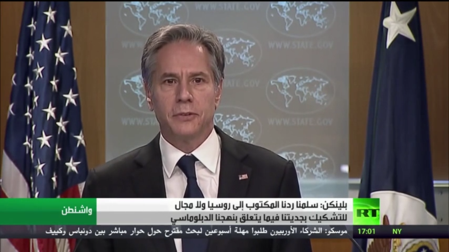 قال وزير الخارجية الأمريكي أنتوني بلينكن، إن الرد الأمريكي على مقترحات الضمانات الأمنية كان منسقا مع الشركاء الأوروبيين.