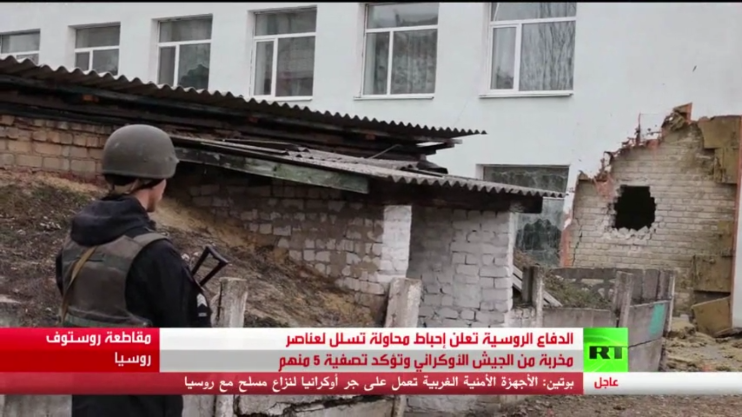 أعلنت وزارة الدفاع الروسية تصفية 5 مسلحين خلال محاولة مجموعة أوكرانية تخريبية انتهاك الحدود الروسية في مقاطعة روستوف جنوب البلاد.