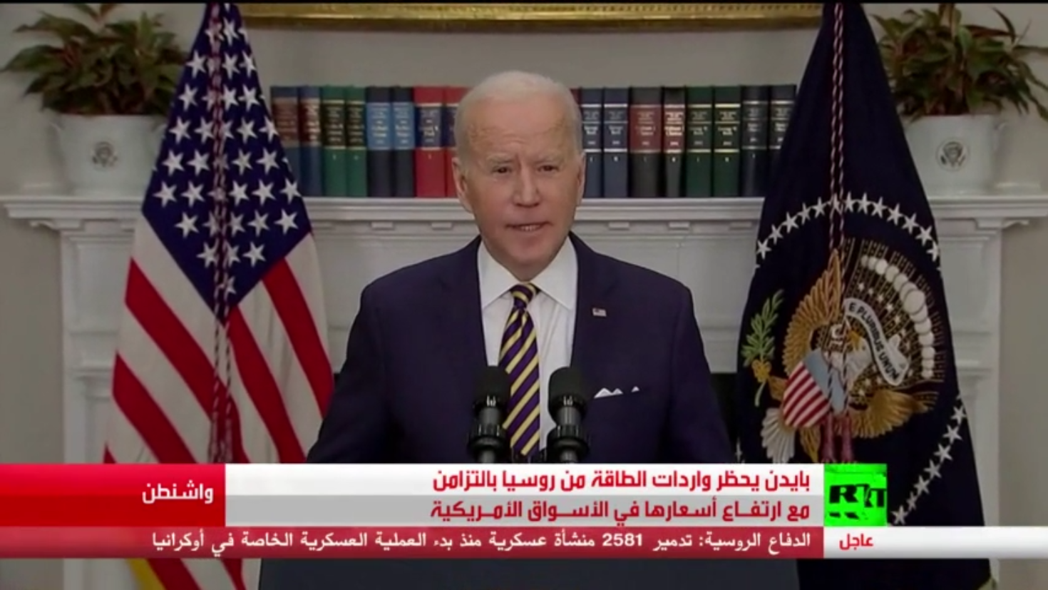 أعلن الرئيس الأمريكي جو بايدن فرض حظر على واردات الطاقة الروسية في خطوة منفردة من واشنطن بسبب الأزمة الأوكرانية..