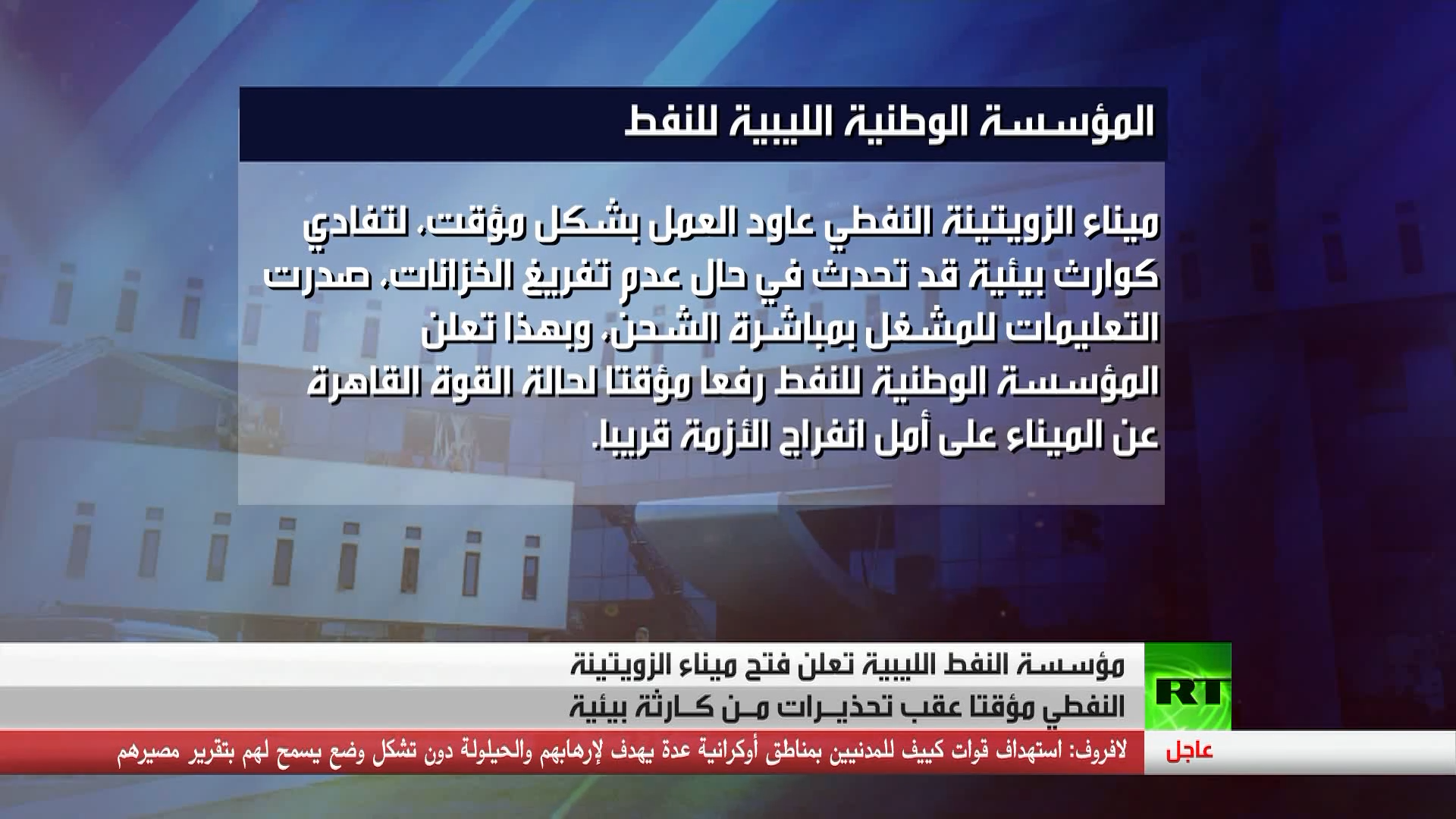 أعلنت مؤسسة النفط الليبية فتح ميناء الزويتينة شرق البلاد عقب تحذيرات من كارثة بيئية جراء غلق المنشأةِ،