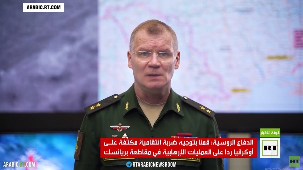 أعلنت وزارة الدفاع الروسية القيام بضربة انتقامية مكثفة على العناصر الرئيسية للبنية التحتية العسكرية لأوكرانيا ومرافق الطاقة الخاصة بها ردا على العمليات الإرهابية في مقاطعة بريانسك