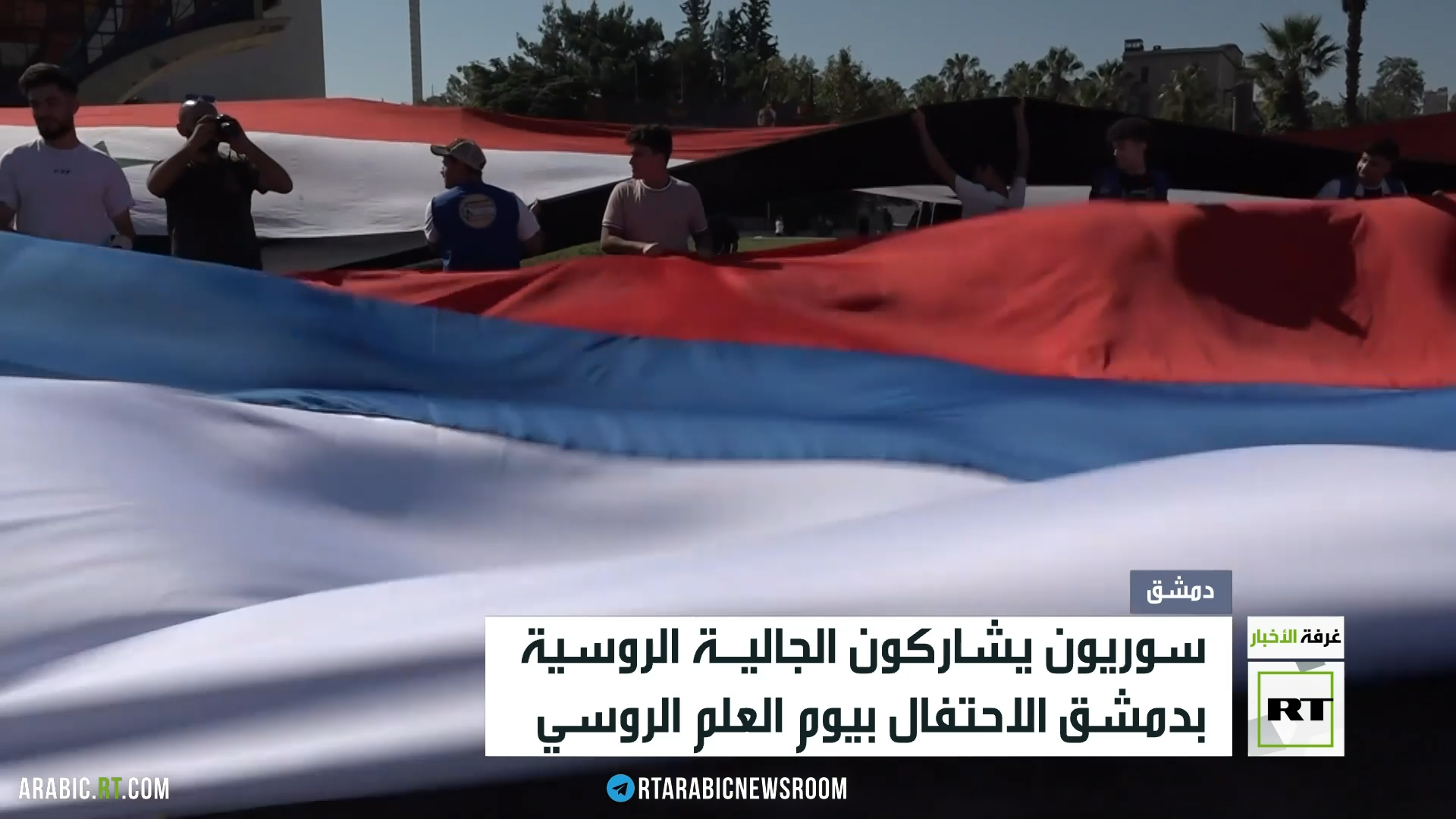أقامت مجموعة من الشباب السوريين بمشاركة الجالية الروسية في دمشق احتفالاً بمناسبة يوم العلَم الروسي.