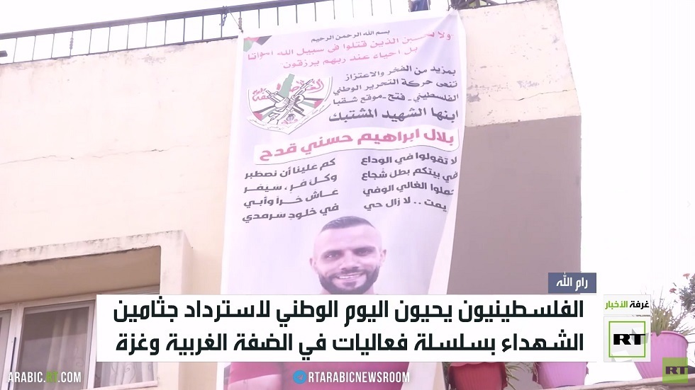 يحيي الفلسطينيون اليوم الوطني لاسترداد جثامين الشهداء بسلسلة فعاليات انطلقت في الضفة الغربية وقطاع غزة لتسليط الضوء على قضية احتجاز إسرائيل لجثامين الشهداء الفلسطينيين.