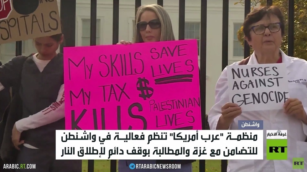 نظمت مجموعة "عرب أمريكا" فعالية في العاصمة الأمريكية واشنطن للتعبير عن التضامن مع غزة، والمطالبة بوقف دائم لإطلاق النار.