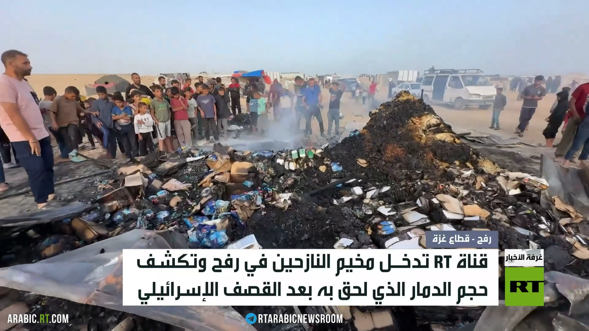 تكشف آثار القصف الإسرئيلي لمخيمات النازحين عن دمار كبير واحتراق معظم المخيم، وقال النازحون إن اختيارهم للمكان جاء بعد تأكيد منشورات الجيش الإسرائيلي أن المنطقة آمنة.