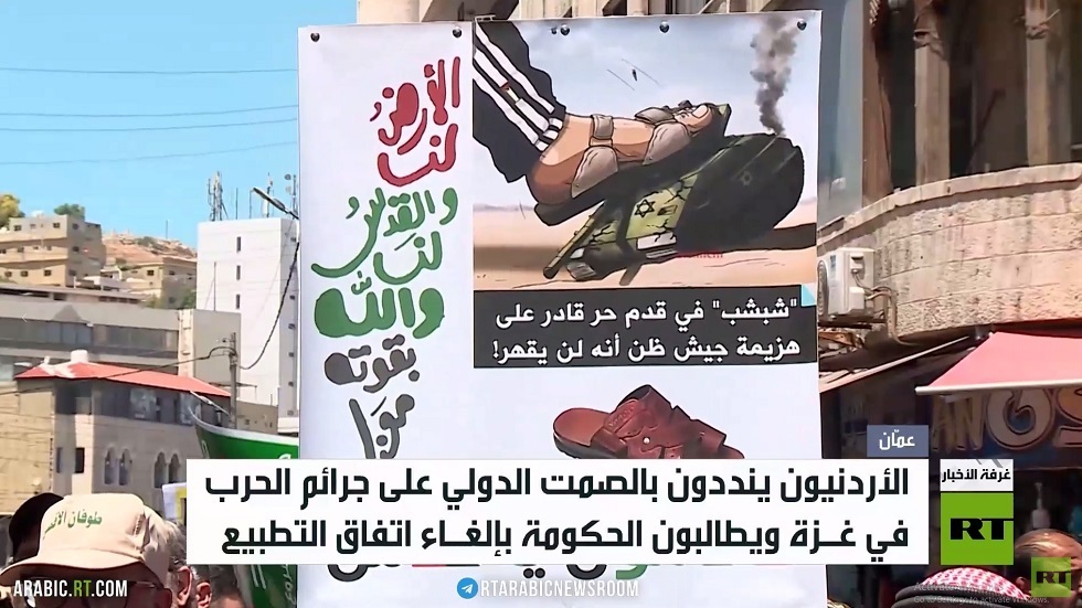 وطالب المشاركون الحكومة الأردنية بإلغاء الاتفاقيات مع إسرائيل وطرد السفير وإغلاق السفارة.