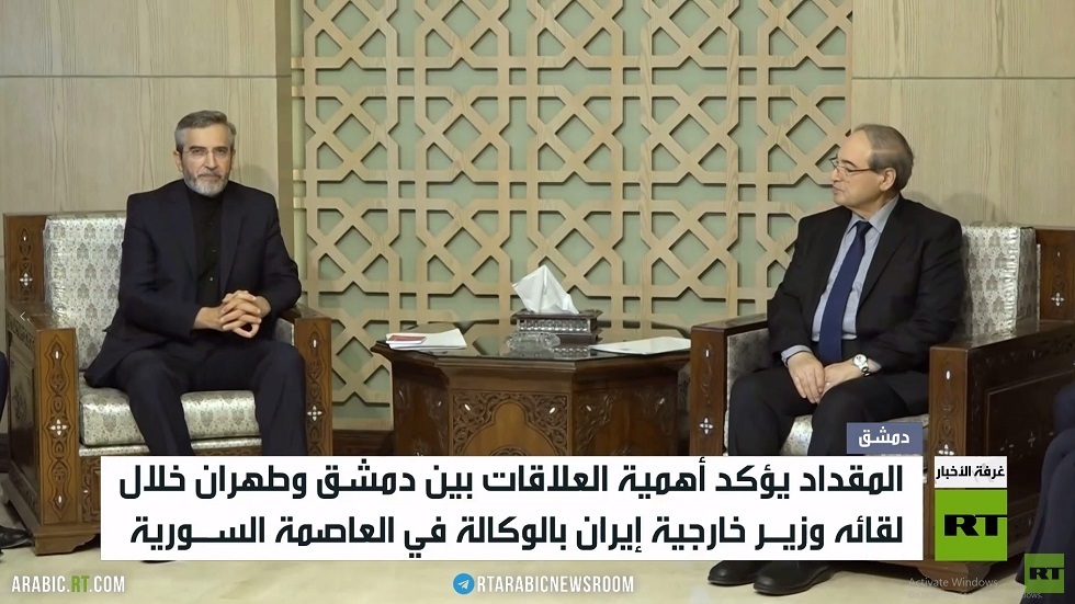 أكد وزير الخارجية السوري فيصل المقداد خلال لقائه بظيره الإيراني بالوكالة علي باقري كني، أهمية التعاون بين دمشق وطهران.