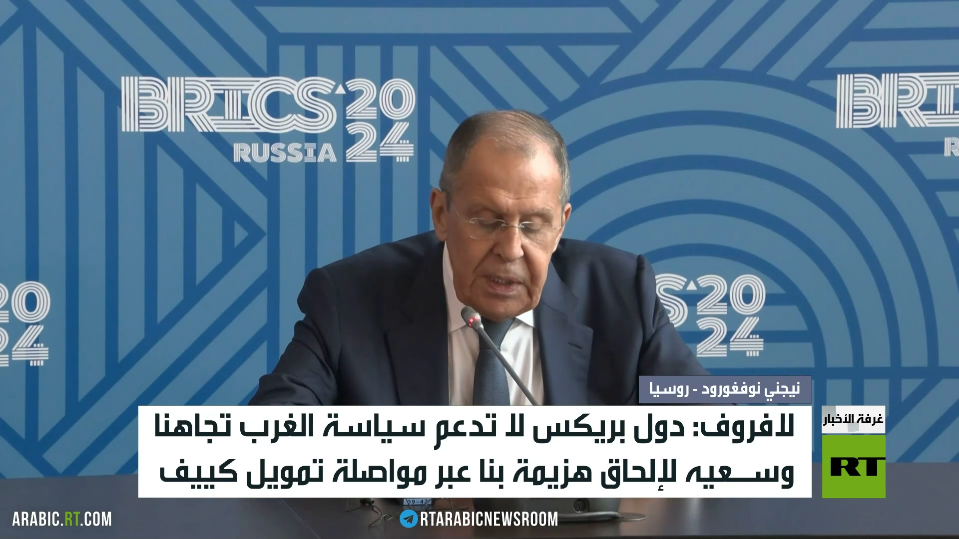 قال وزير الخارجية الروسي سيرغي لافروف إن دول بريكس لا تدعم سياسة الغرب تجاه روسيا وسعيَه لإلحاق هزيمة استراتيجية بها عبر مواصلة تمويل كييف.