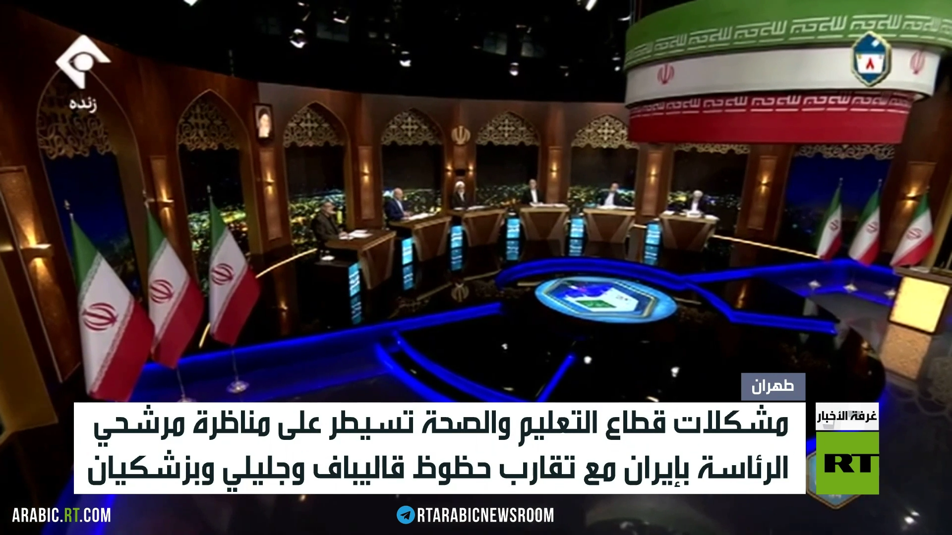 يخيم الاقتصاد ومشكلات القطاع الصحي والتعليمي على مناظرة المرشحين الـ6 بالانتخابات الإيرانية الرئاسية.