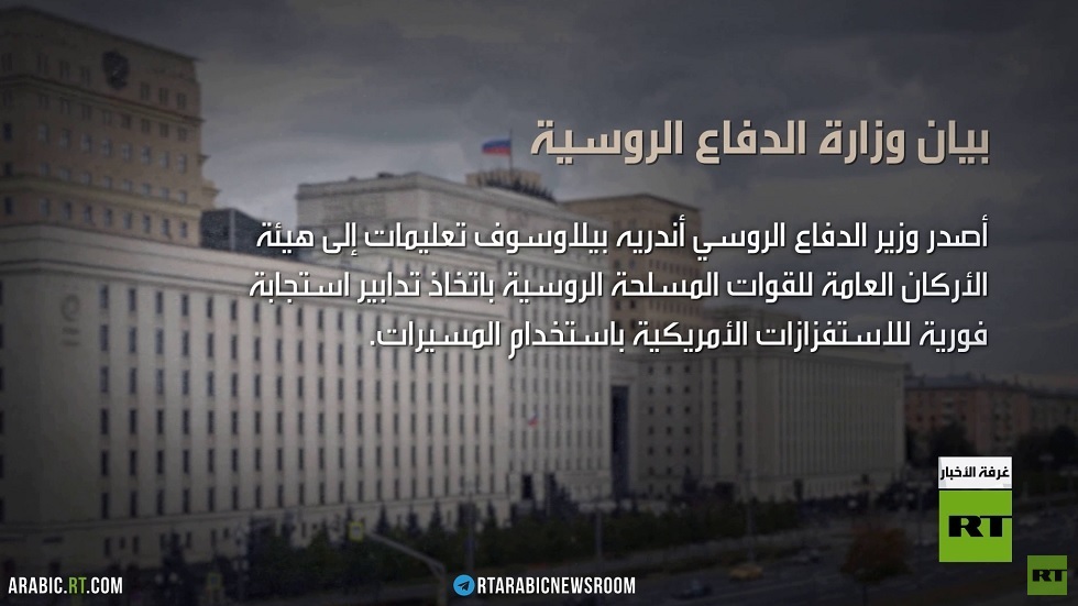 أصدر وزير الدفاع الروسي أندريه بيلاوسوف تعليمات إلى هيئة الأركان العامة لاتخاذ إجراءات سريعة في التعامل مع استفزازات المسيرات الأمريكية.