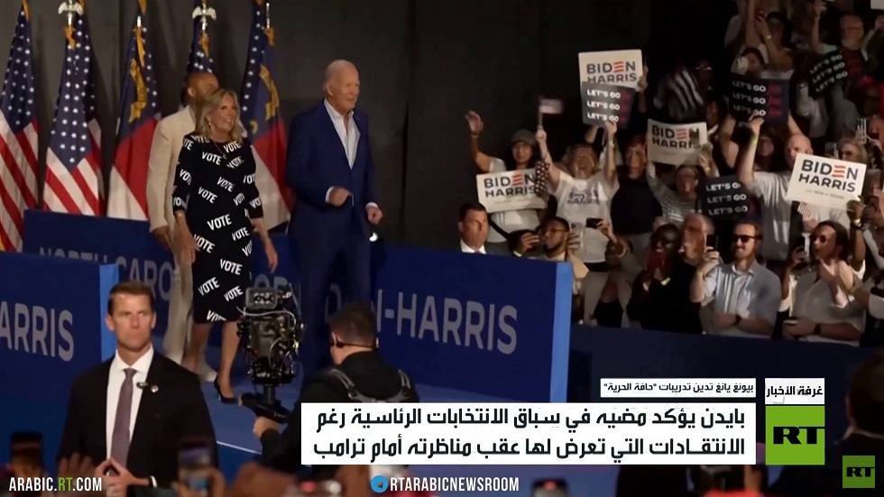 وأقر بايدن أمام تجمع لأنصاره في ولاية كارولاينا الشمالية بتراجع قدراته الجسدية والحركية، إلا أنه شدد على مواصلة السباق الانتخابي.