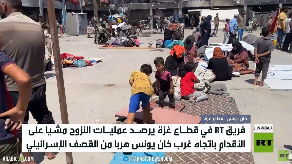 رصد فريق آرتي في قطاع غزة حركة نزوح الفلسطينيين مشياً على الأقدام باتجاه غرب خان يونس عقب أوامر الإخلاء الإسرائيلية، وتواجه آلاف الأسر الفلسطينية خطر التشرد.