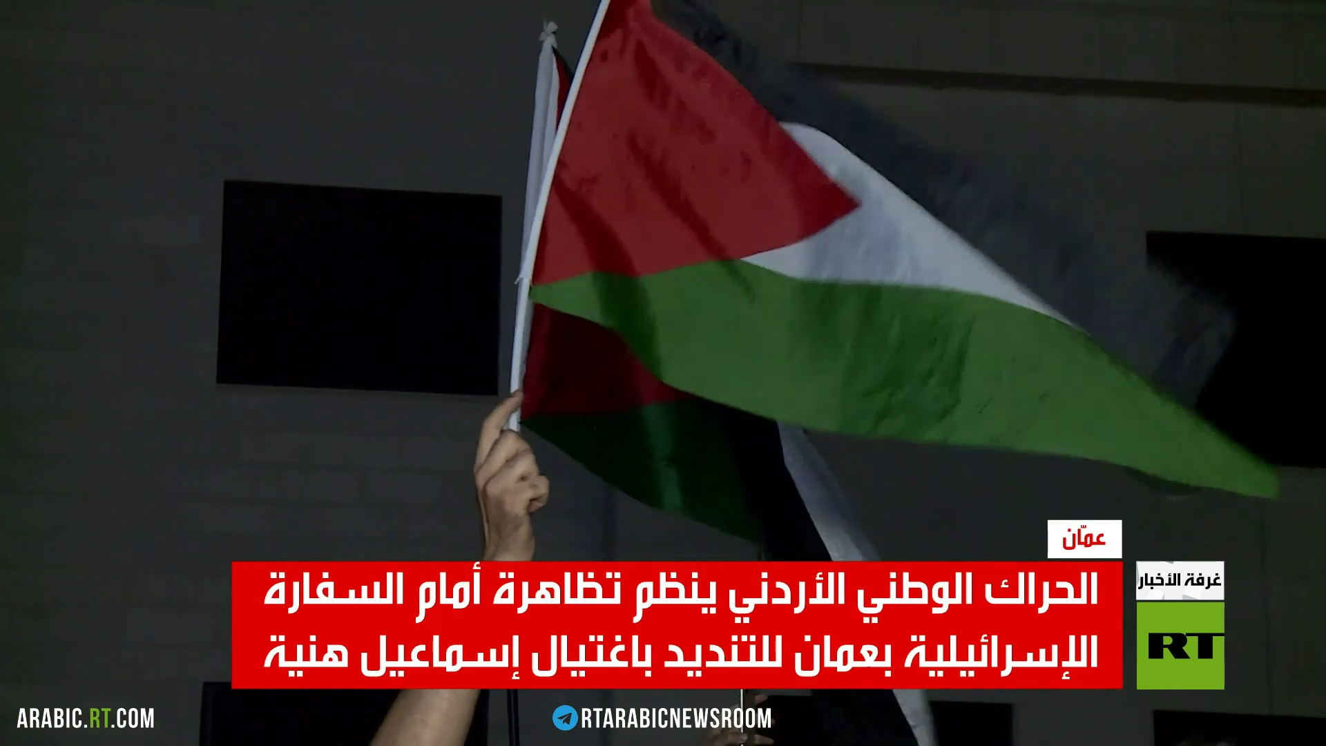 نظم الحراك الوطني الأردني تظاهرة في محيط السفارة الإسرائيلية للتعبير عن غضبه لاغتيال رئيس المكتب السياسي لحركة حماس إسماعيل هنية.