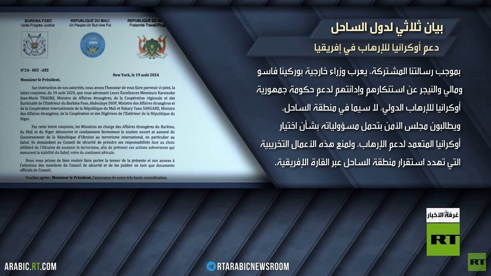 ودان وزراء خارجية الدول الثلاث، في رسالة إلى رئيس المجلس، الدعم العلني الذي تقدمه سلطات كييف للإرهاب الدولي، لا سيما في منطقة الساحل الإفريقي.