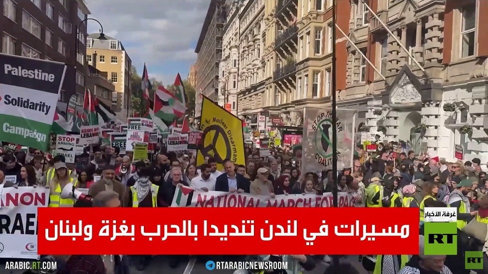 شهدت بريطانيا اليوم مظاهرة حاشدة في ذكرى مرور عام على الحرب الإسرائيلية على غزة، وتوسع العدوان ليشمل لبنان واليمن.