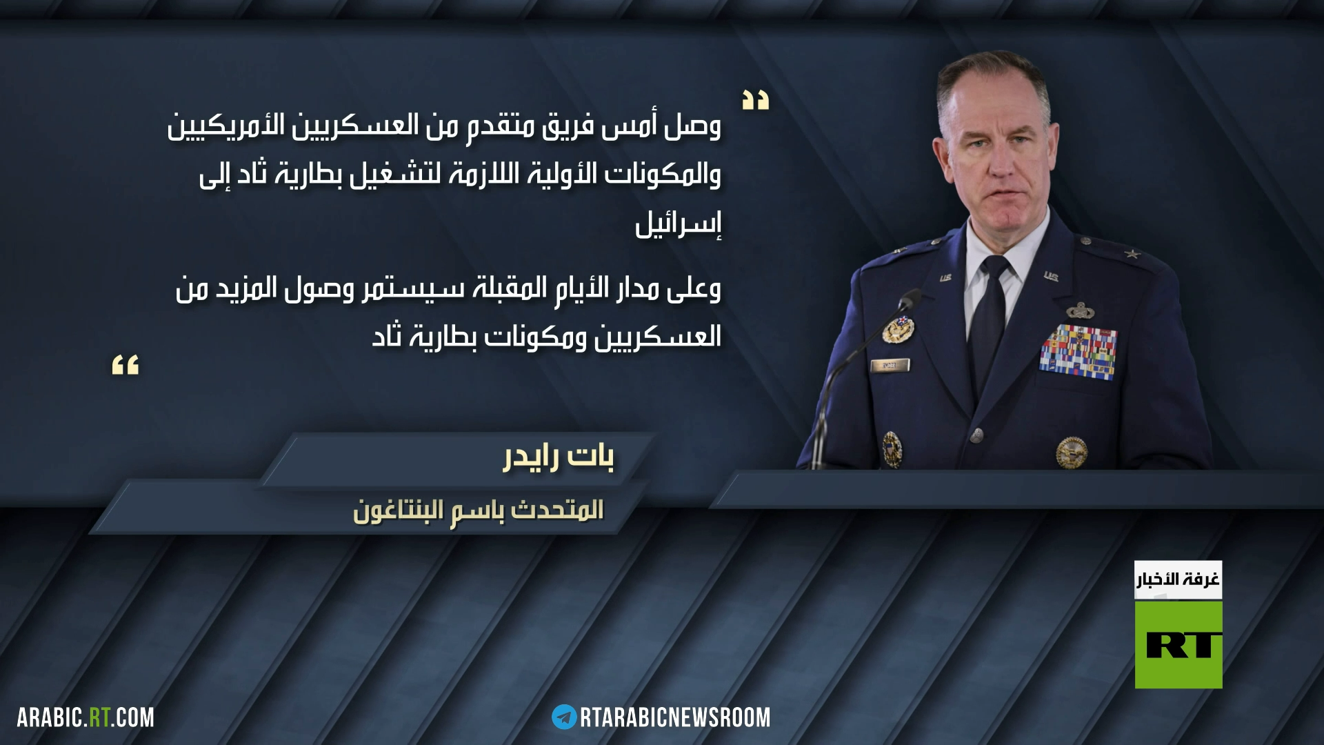 أعلنت وزارة الدفاع الأمريكية إرسال بطارية دفاع جوي صاروخية من منظومة "ثاد" إلى إسرائيل، إلى جانب فريق من القوات اللازمة لتشغيلها.
