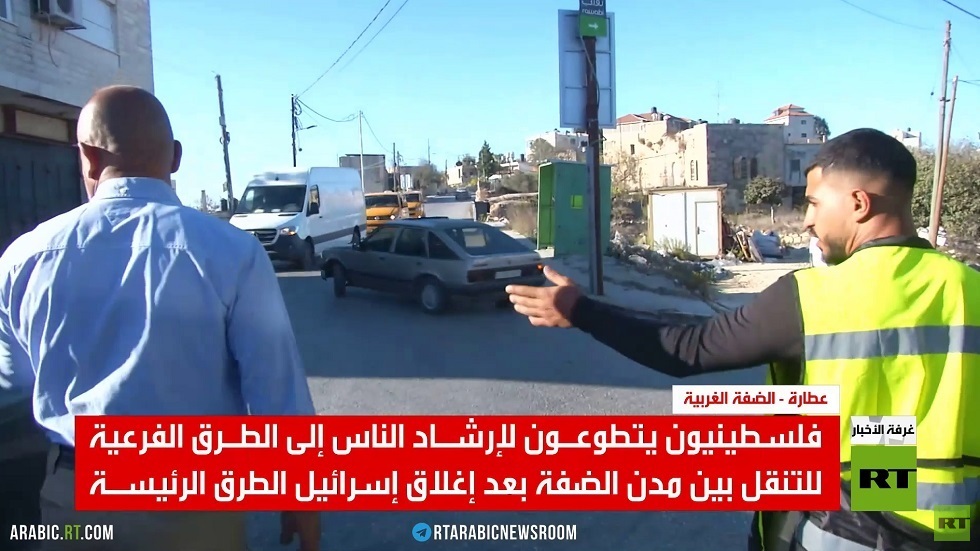 في بلدة عطارة، الواقعة شمال رام الله، ينشط المتطوعون الفلسطينيون في تنظيم حركة السير وإرشاد المواطنين إلى الطرق البديلة.