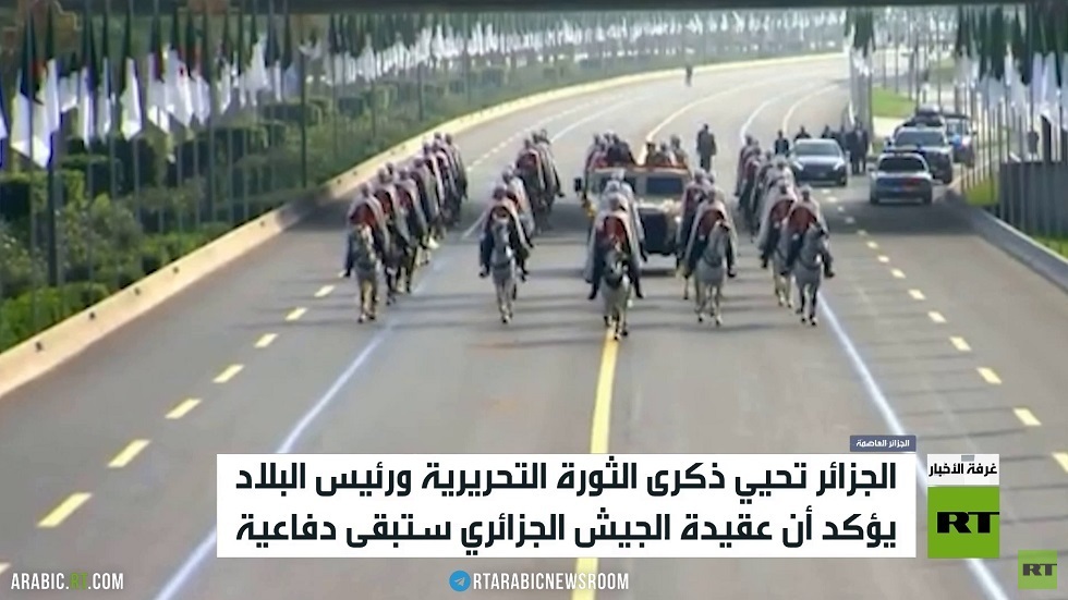 وخلال إشرافه على الاستعراض العسكري الذي نُظم بمناسبة ذكرى الثورة التحريرية الجزائرية، جدد تبون التزامه بمواصلة معركة البناء والتشييد رغم الظروف الاقتصادية والأمنية التي يشهدها العالم.