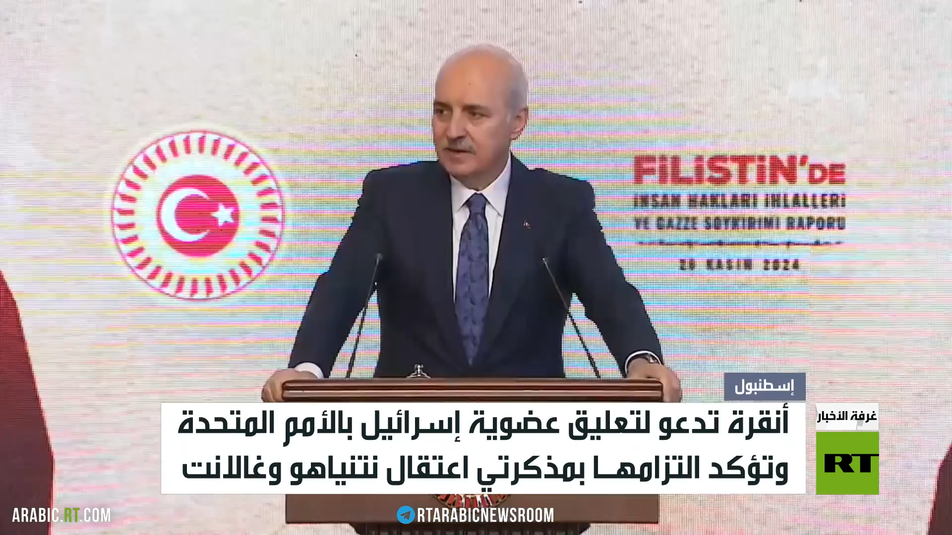 طالب رئيس البرلمان التركي، نعمان قورتولموش، الأمم المتحدة بتعليق عضوية إسرائيل على خلفية المجازر التي ترتكبها في فلسطين ولبنان..