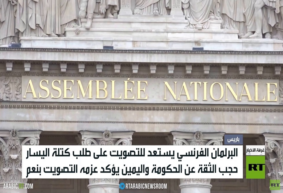 يستعد البرلمان الفرنسي للتصويت على طلب كتلة اليسار بحجب الثقة عن الحكومة، من جهتها أعلنت كتلة التجمع الوطني اليميني عزمها التصويت لصالح إسقاط الحكومة، وسط خلافات بين الجانبين.