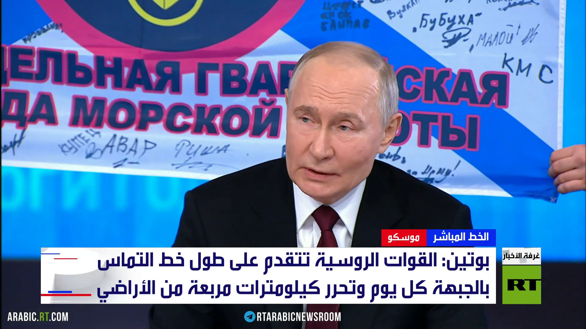 قال الرئيس فلاديمير بوتين خلال المؤتمر الصحفي السنوي والخط المباشر، إن روسيا تتجه نحو تحقيق أهدافها الأساسية من العملية العسكرية الخاصة في أوكرانيا، وأعرب عن استعداده للقاء ترامب.