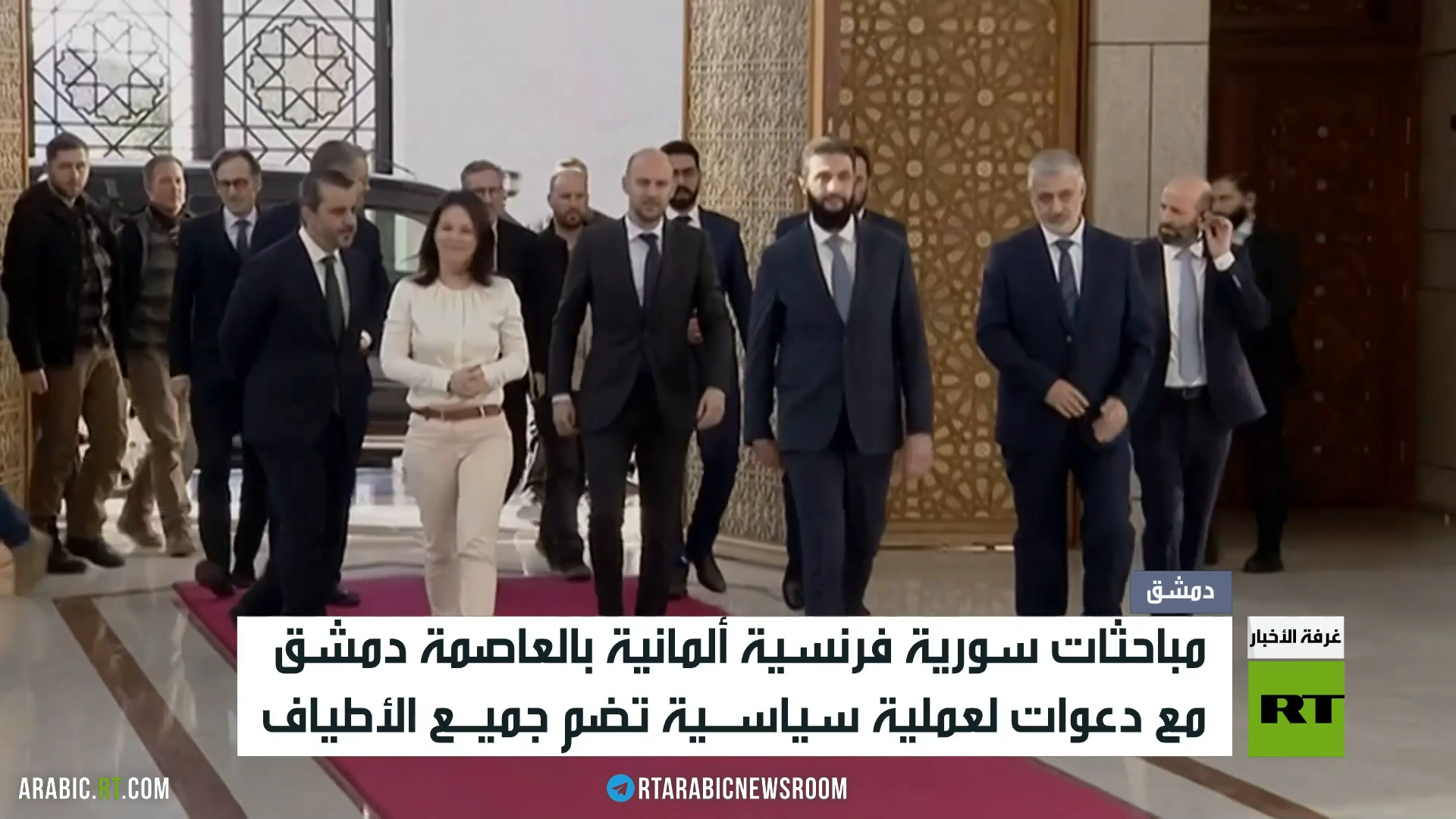 التقى قائد الإدارة السورية الجديدة أحمد الشرع وزيرَي خارجية فرنسي جان نويل بارو، وألمانيا أنالينا بيربوك في دمشق.
