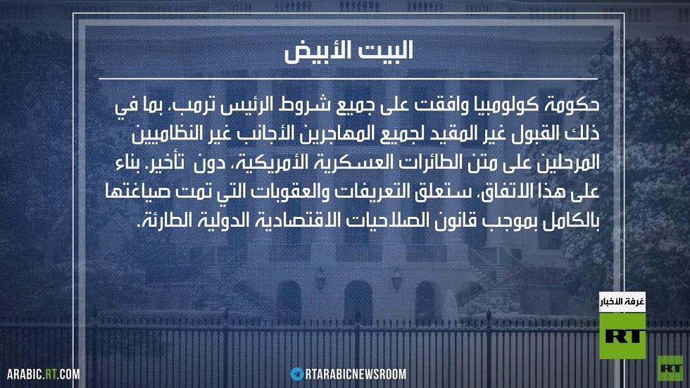 تجنبت الولايات المتحدة وكولومبيا حربا تجارية، بعد إعلان البيت الأبيض قبول بوغوتا ترحيل المهاجرين غير النظاميين من الولايات المتحدة.