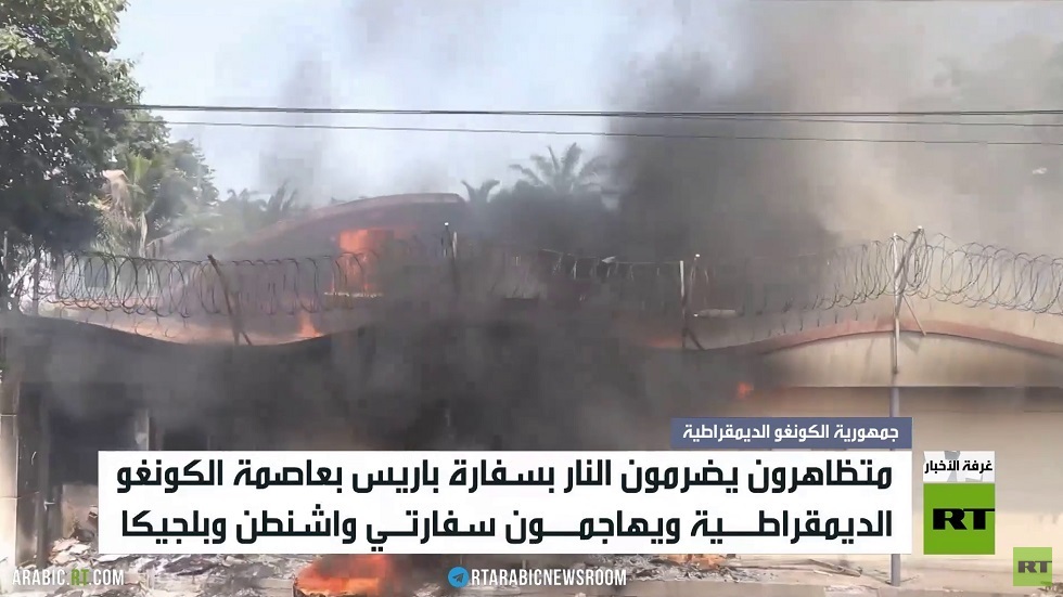 أضرم متظاهرون النار بالسفارة الفرنسية بعاصمة الكونغو الديمقراطية، فيما هاجموا سفاراتِ الولايات المتحدة وكينيا وبلجيكا ورواندا على خلفية الأحداث شرقي البلاد..