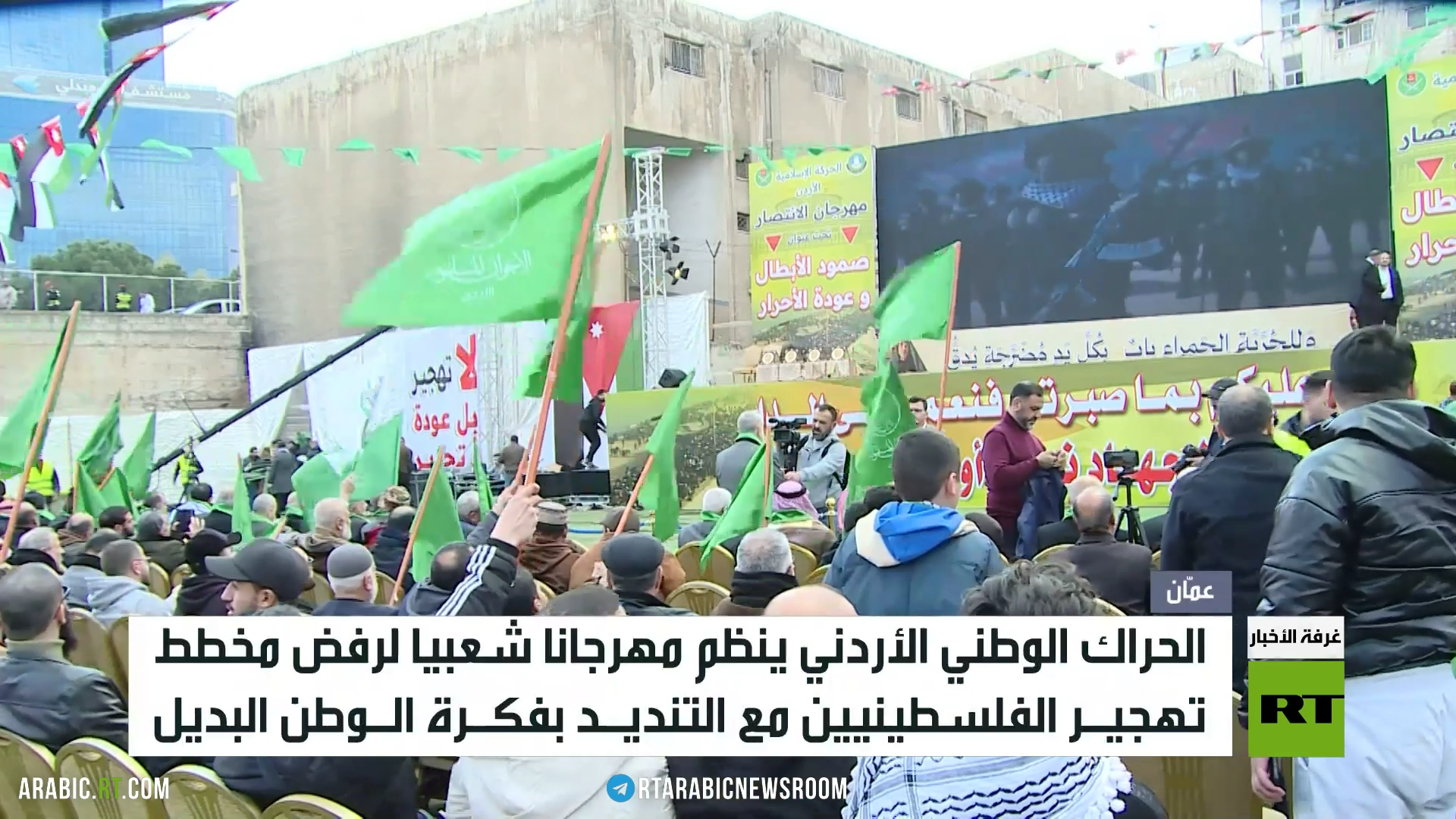 نظم الحراك الوطني الأردني مهرجان شعبيا أمام مجلس النواب الأردني لدعم أهالي غزة، مع التنديد بالمقترح الأميركي بتهجير الشعب الفلسطيني إلى مصر والأردن.