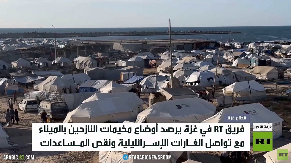 يعيش آلاف الفلسطينيين النازحين في ميناء غزة ضمن ظروف صعبة وقاسية، في ظل استمرار القصف وانعدام الماء والغذاء والدواء.