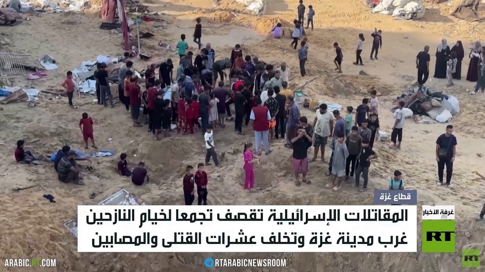 ارتكب الطيران الحربي الإسرائيلي مجزرة جديدة بعدما استهدف بشكل مباشر تجمعا لخيام النازحين في محيط مدرسة العائلة المقدسة، بحي الرمال، غربي مدينة غزة..