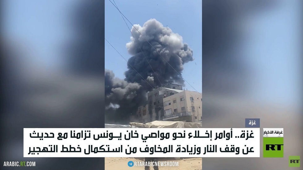 تترافق أوامر الإخلاء الإسرائيلية الجديدة للفلسطينيين نحو مواصي خان يونس مع قصف متواصل وغارات تشمل جميع المناطق، تزامنا مع الحديث عن وقف لإطلاق النار..