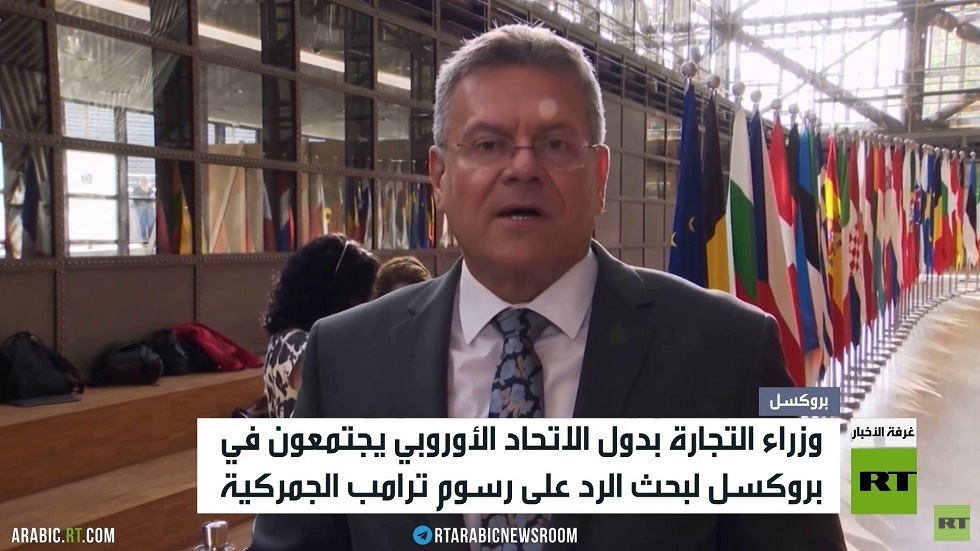 يعقد وزراء التجارة لدول الاتحاد الأوروبي اجتماعا ببروكسل، لبحث سبل الرد على الرسوم الجمركية الجديدة المعلنة من قبل الرئيس الأمريكي دونالد ترامب بنسبة 30% على الواردات الأوروبية..