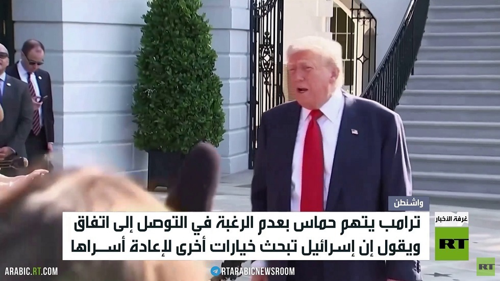 قال الرئيس الأميركي دونالد ترامب إن حركة حماس لا ترغب في إبرام اتفاق بشأن وقف إطلاق النار في غزة وإطلاق سراح الأسرى، وإن إسرائيل تدرس خيارات بديلة لإعادة الأسرى وتطهير القطاع.