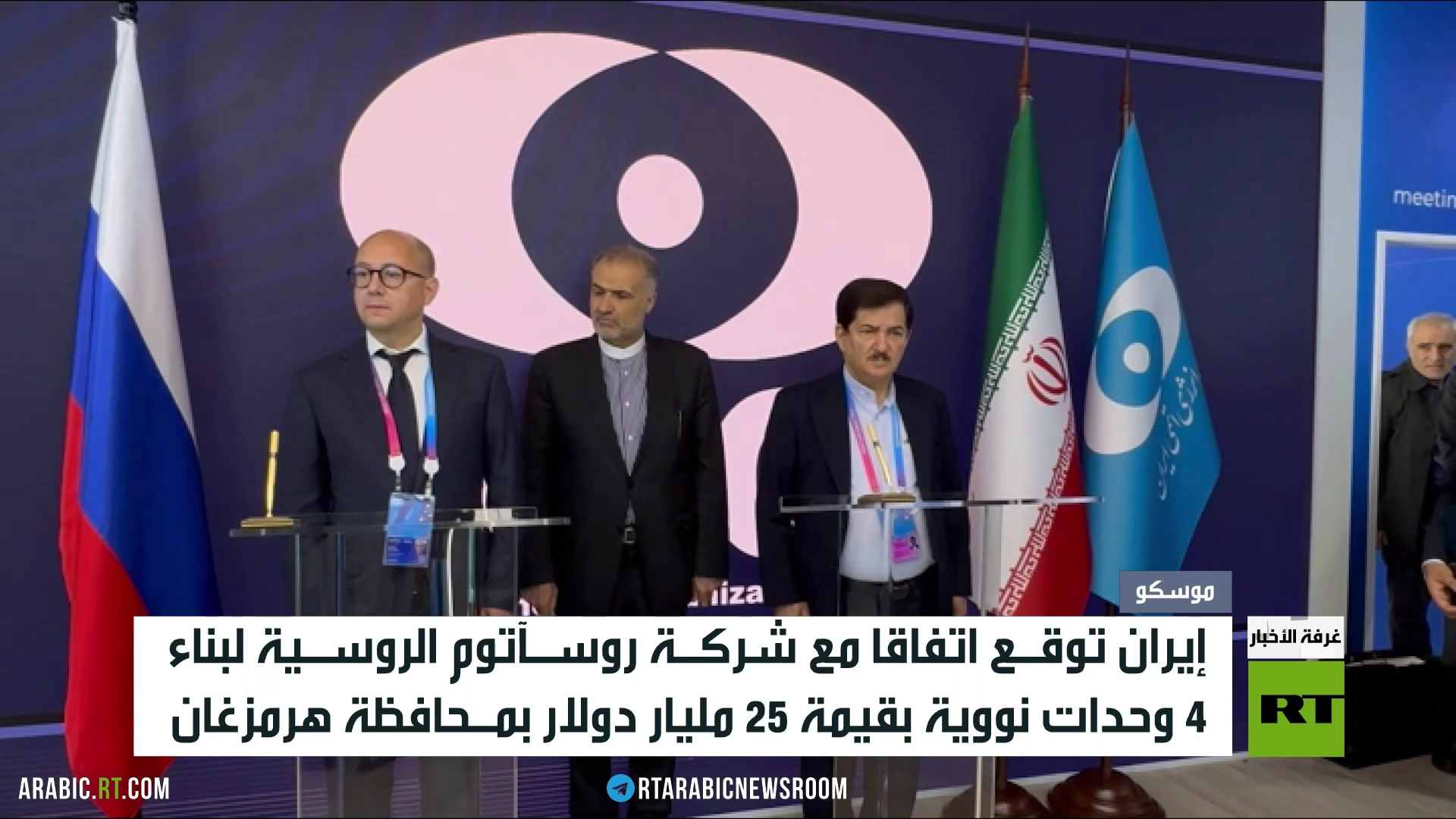 أعلنت طهران أنها وقعت اتفاقية تعاون جديدة بقيمة 25 مليار دولار مع شركة روس آتوم..وينص الاتفاق على بناء 4 وحدات لمحطات نووية من الجيل الثالث المتطور في محافظة هرمزغان جنوب إيران.