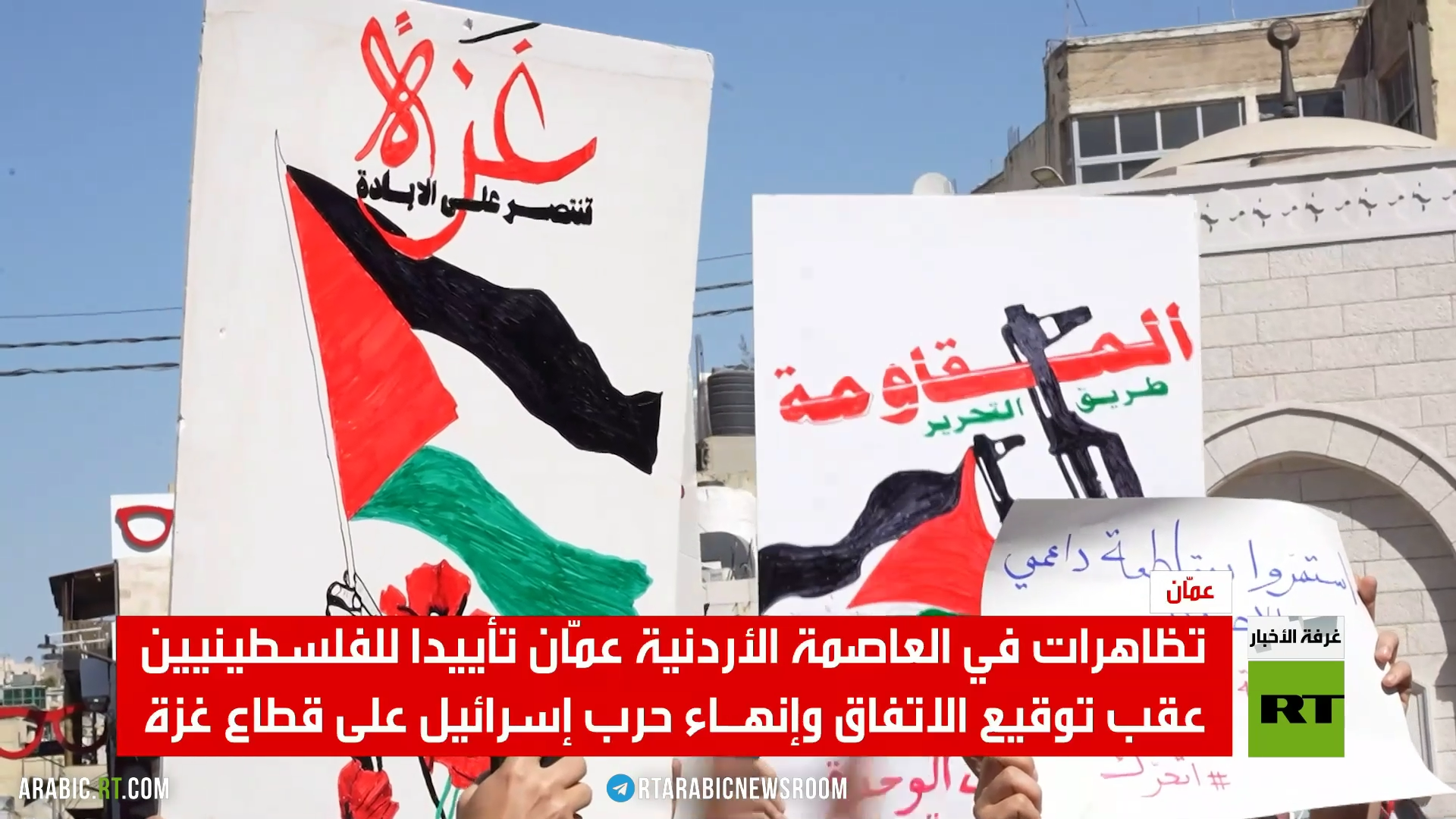 أكد الحراك الوطني في الأردن تضامنه مع الشعب الفلسطيني، وذلك خلال تظاهرة بمناسبة وقف إطلاق النار بقطاع غزة، مع المطالبة بضمانات دولية حقيقية للحيلولة دون نقض إسرائيل الاتفاق.