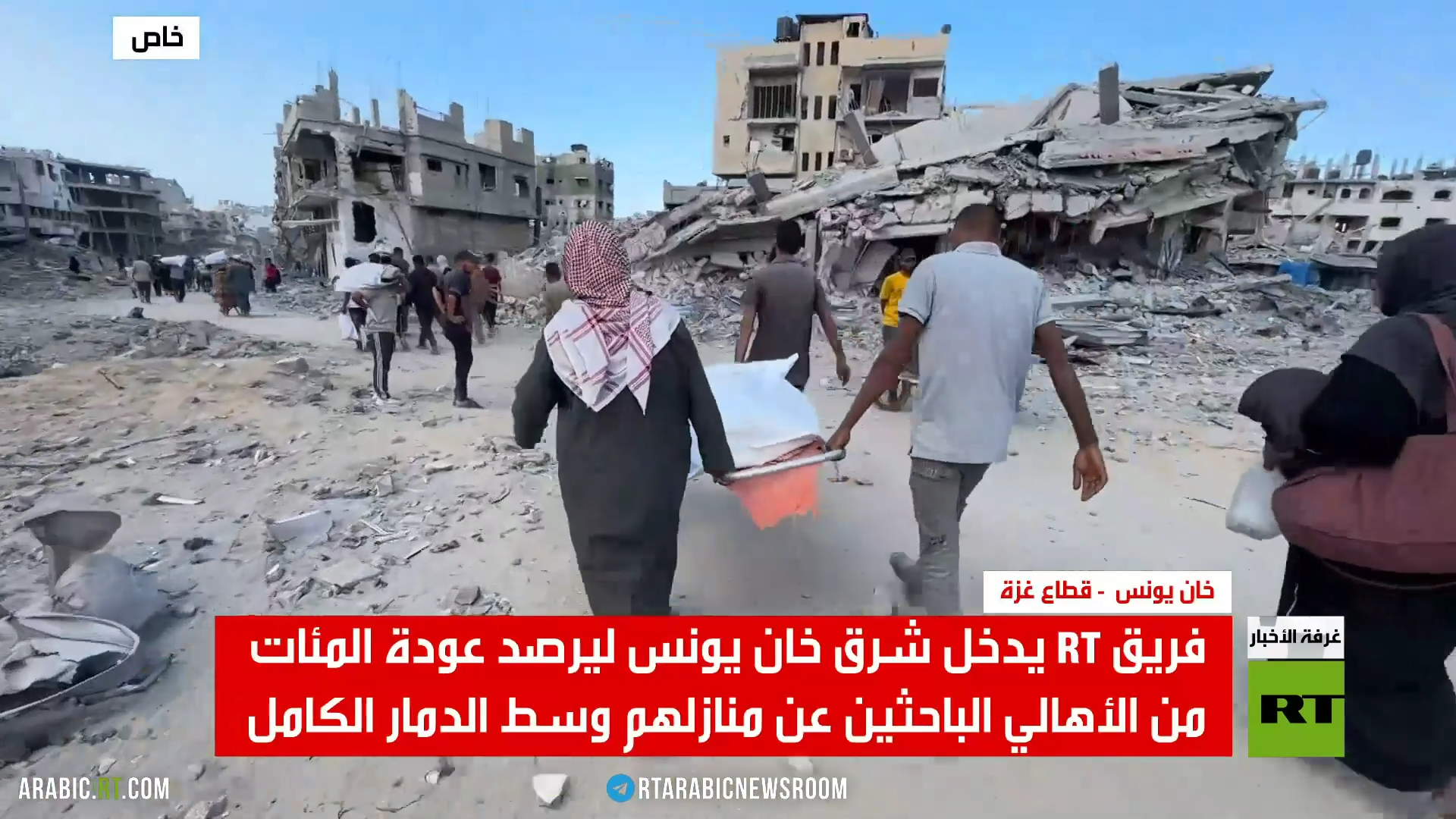 رصد فريق آرتي في خان يونس عودة المئات من الفلسطينيين لتفقد منازلهم وأملاكهم شرق المدينة، ليجدوا منطقة مدمرة بالكامل بكل ما فيها من أبنية ومدارس ومستشفيات.