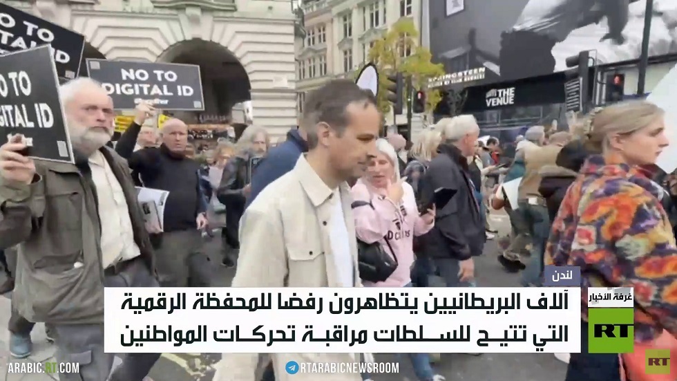 تظاهر في العاصمة البريطانية لندن آلاف المواطنين تنديدا بتقييد الحريات العامة، وذلك إثر قرار الحكومة فرض مشروع المحفظة الرقمية التي تتيح لها متابعة ومراقبة تحركات المواطنين.