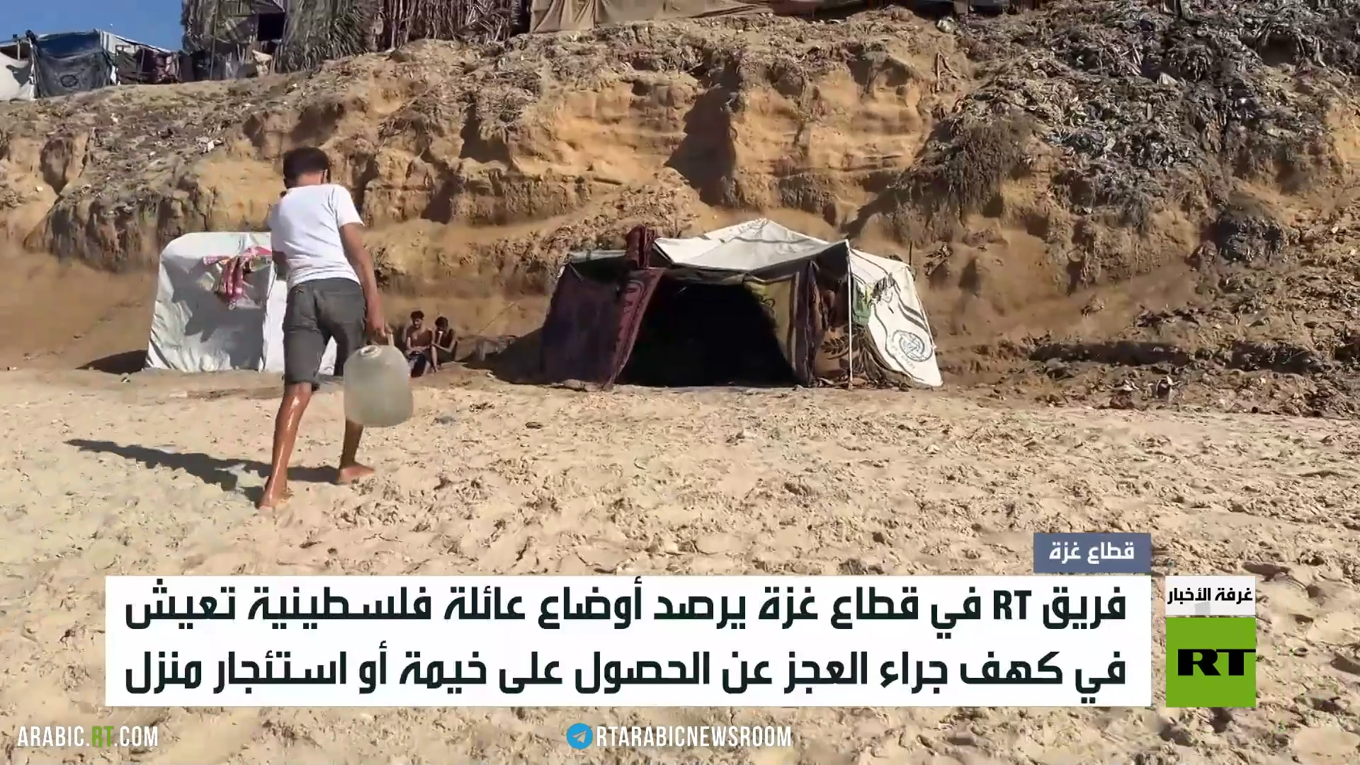 وتابع فريق آرتي في القطاع أوضاع العائلة وسلبيات العيش في هذا المكان جراء الرطوبة وما تسببها من أمراض.