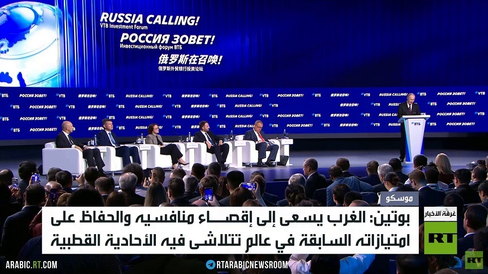 قال الرئيس الروسي فلاديمير بوتين خلال مشاركته في منتدى /روسيا تنادي/ الاستثماري في موسكو، إن العالم يعاني من عدم الاستقرار، بسبب ممارسات دولٍ غربية تحاول الهيمنة على الأسواق..