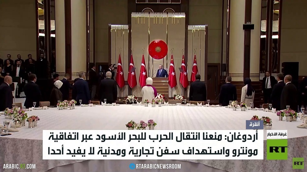 قال الرئيس التركي رجب طيب أردوغان إن أنقرة وعبر اتفاقية مونترو حالت دون انتقال الحرب للبحر الأسود.