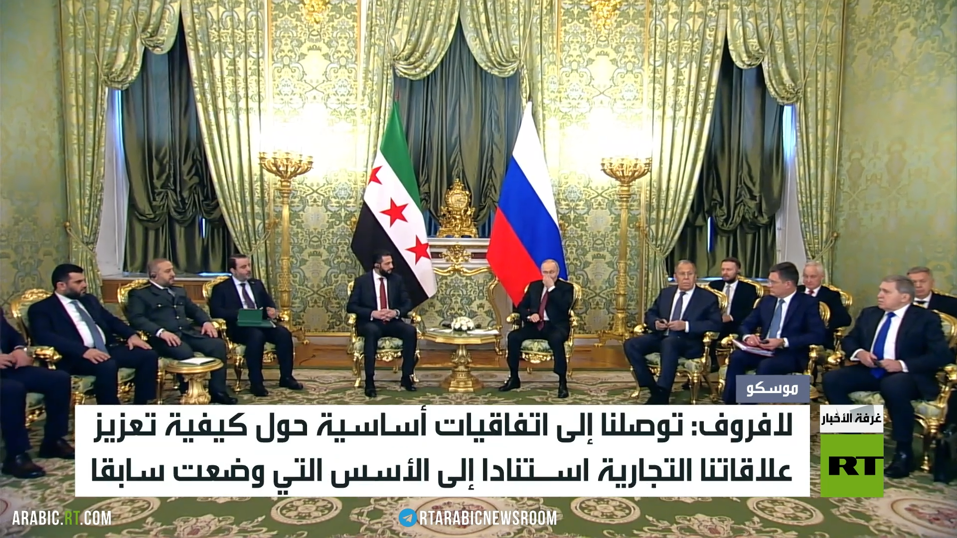مشيرا إلى أن موسكو ستعمل على تطوير علاقاتها التجارية والاقتصادية مع دمشق استنادًا إلى الأسس التي وضعت سابقا..بدوره أعرب الشيباني عن تطلع دمشق لنقل العلاقات الثنائية إلى مستوى استراتيجي يخدم مصلحة البلدين.