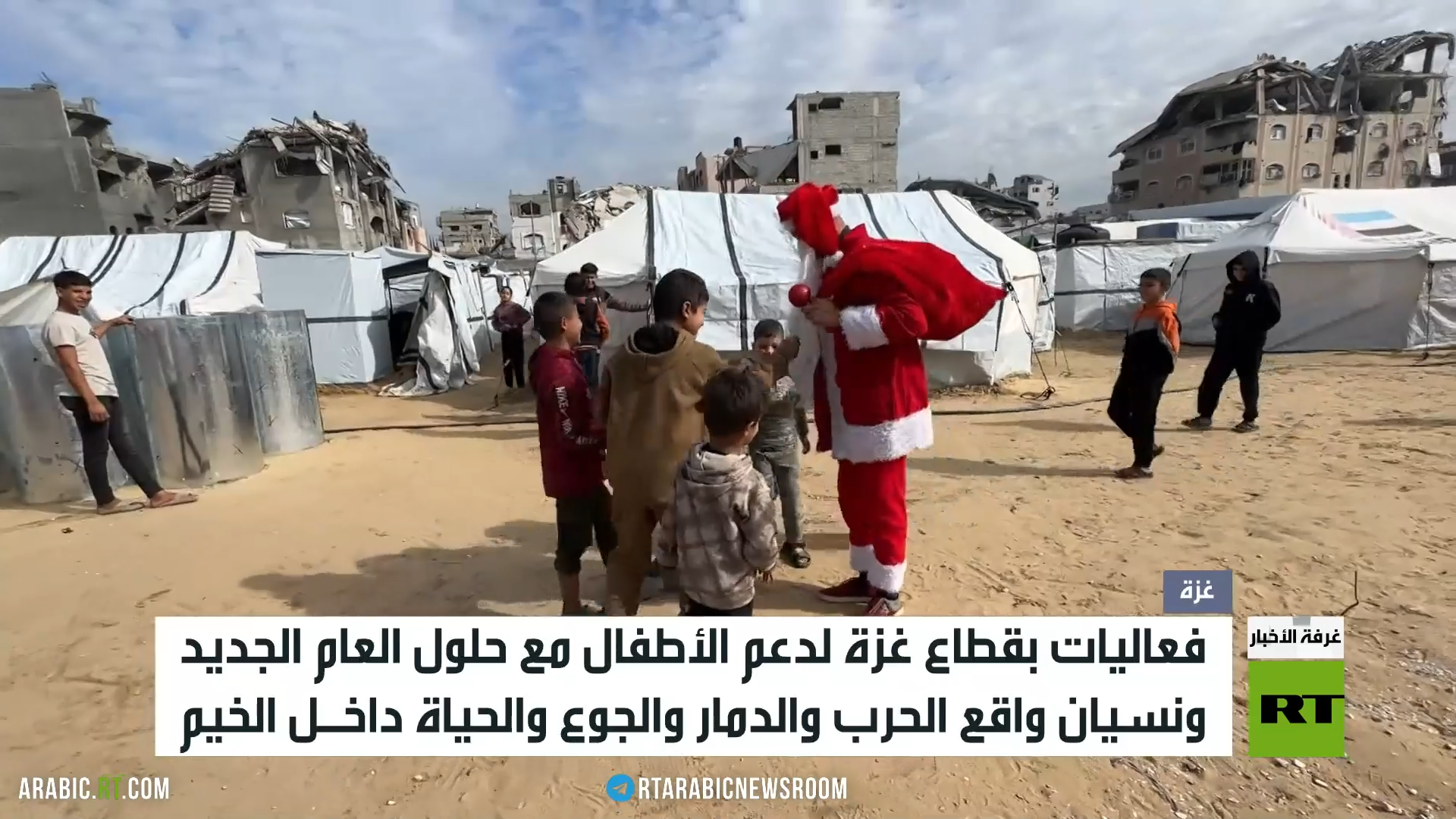 يحاول الفلسطينيون في غزة منح القليل من الفرح للأطفال، بمناسبة حلول العام الجديد، عبر مجموعة من الفعاليات المختلفة، بهدف التحفيف من أثر الحرب والدمار والتشرد.