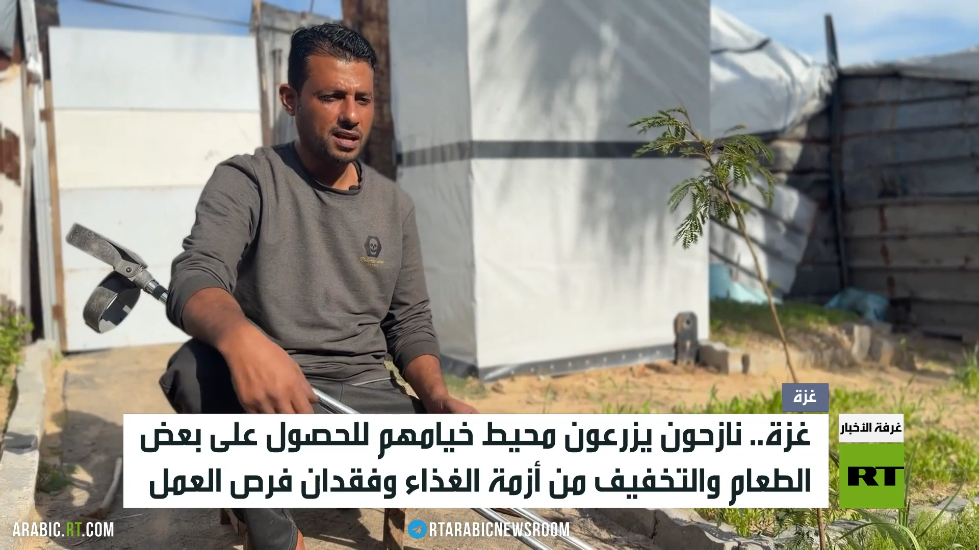 فريق آرتي في غزة تابع أوضاع الشاب محمد نصير عقب زراعته لمحيط خيمته بهدف تأمين بعض الطعام للعائلة.