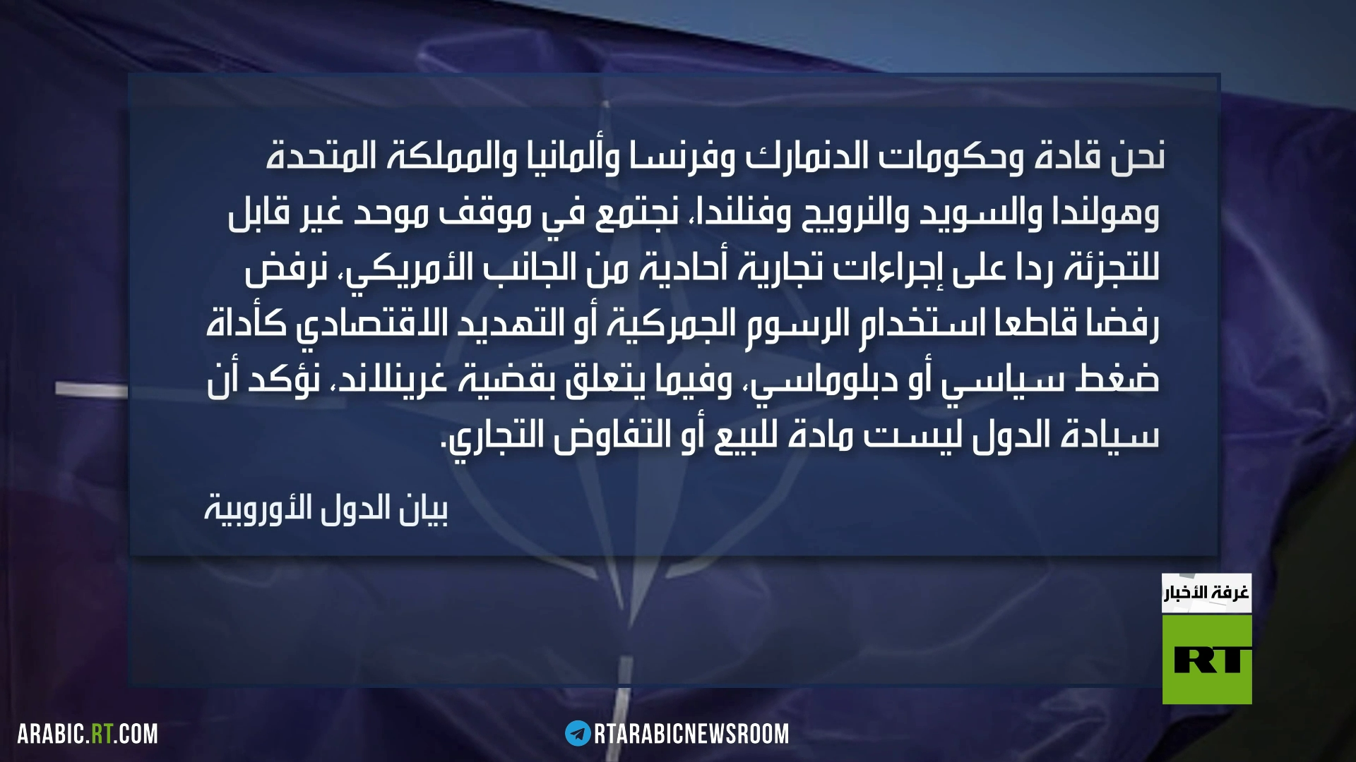 تعلن واشنطن فرض رسوم جمركية جديدة على عواصم أوروبية تشارك في ترتيبات أمن غرينلاند، فيجتمع الأوروبيون في بروكسل لمناقشة الرد على الخطوة الأمريكية.