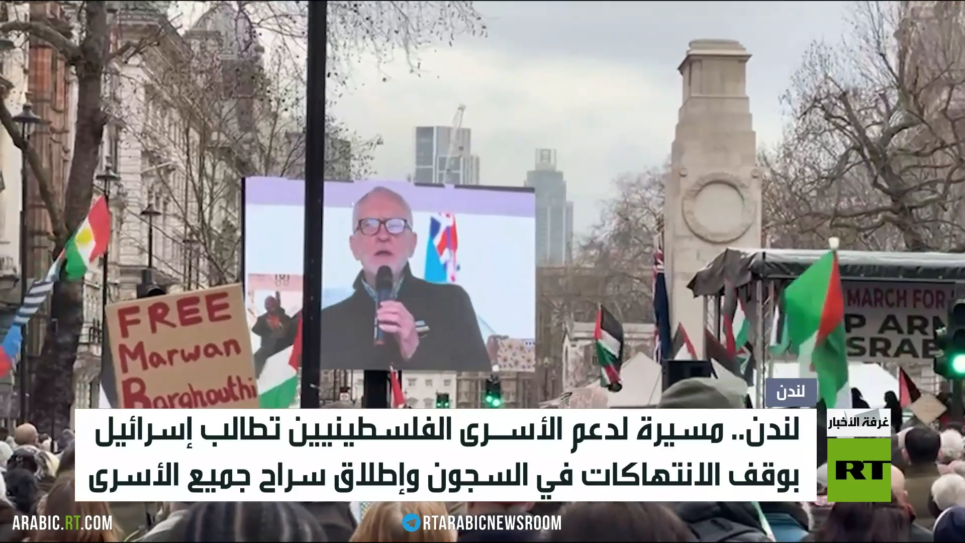 شهدت لندن مسيرة لدعم الفلسطنيين في قطاع غزة، بدعوة من التحالف من أجل فلسطين، وتأتي المسيرة تزامنا مع اليوم العالمي للتضامن مع الأسرى الفلسطينيين.