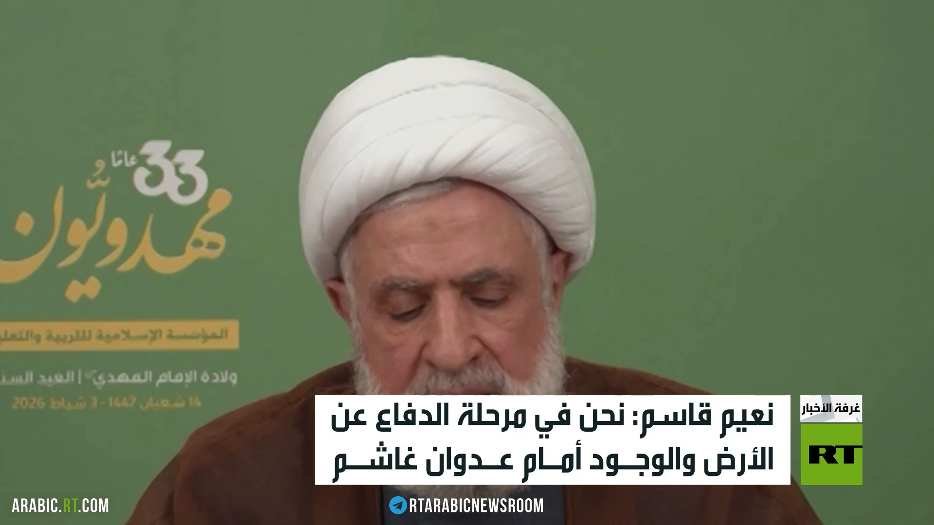 قال الأمين العام لحزب الله اللبناني نعيم قاسم إن المرحلة الحالية التي يعيشها لبنان هي الدفاع عن الأرض أمام عدوان وجودي، حسب تعبيره.. مؤكدا رفضه تقديم بلاده أي تنازلات إضافية.