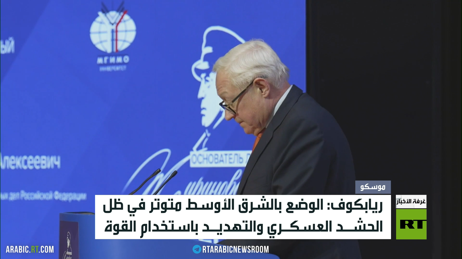أكد نائب وزير الخارجية الروسي سيرغي ريابكوف ان الوضع بالشرق الأوسط متوتر في ظل الحشد العسكري والتهديد باستخدام القوة مشيراً إلى أنه لا يستبعد عملا عسكريا جديدا ضد إيران.